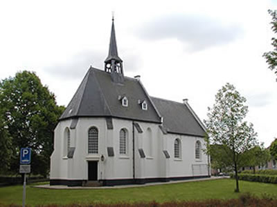 Het fraaie witte kerkje in Bruchem ligt aan het kadeplein.
