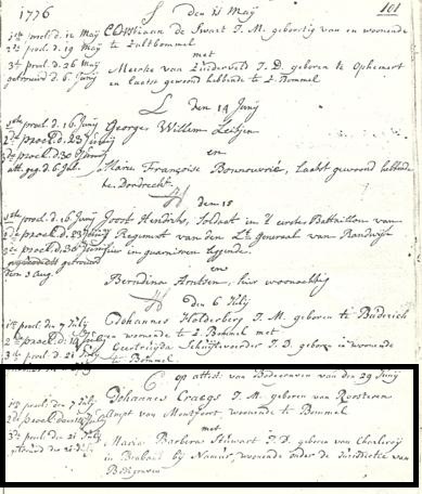 Het huwelijk werd gesloten op 21 juli 1776. Zoals U kunt zien wordt hier de oorspronkelijke naam Craegs gevoerd, die uiteindelijk later in Bruchem wordt veranderd in Cras.